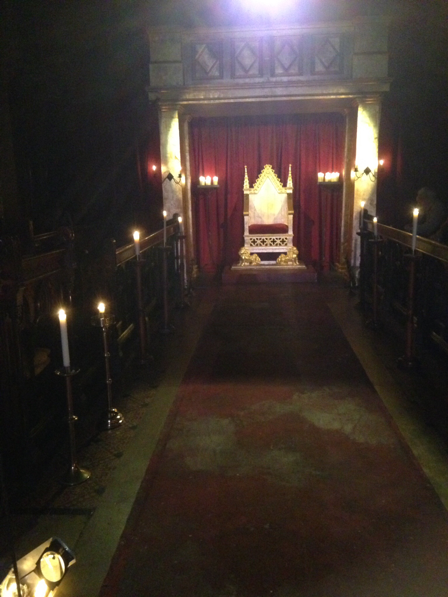 The action took place on the shape of a cross, there was not a raised stage, and the pews were all down the length of it with the throne at one end. There are different price bands and so it depended on your ticket price to where you could choose to sit, I was sat near the throne. The whole of the cross was used so everyone could see the majority of the action though where I was sat some of my view was obscured by the pew ends.