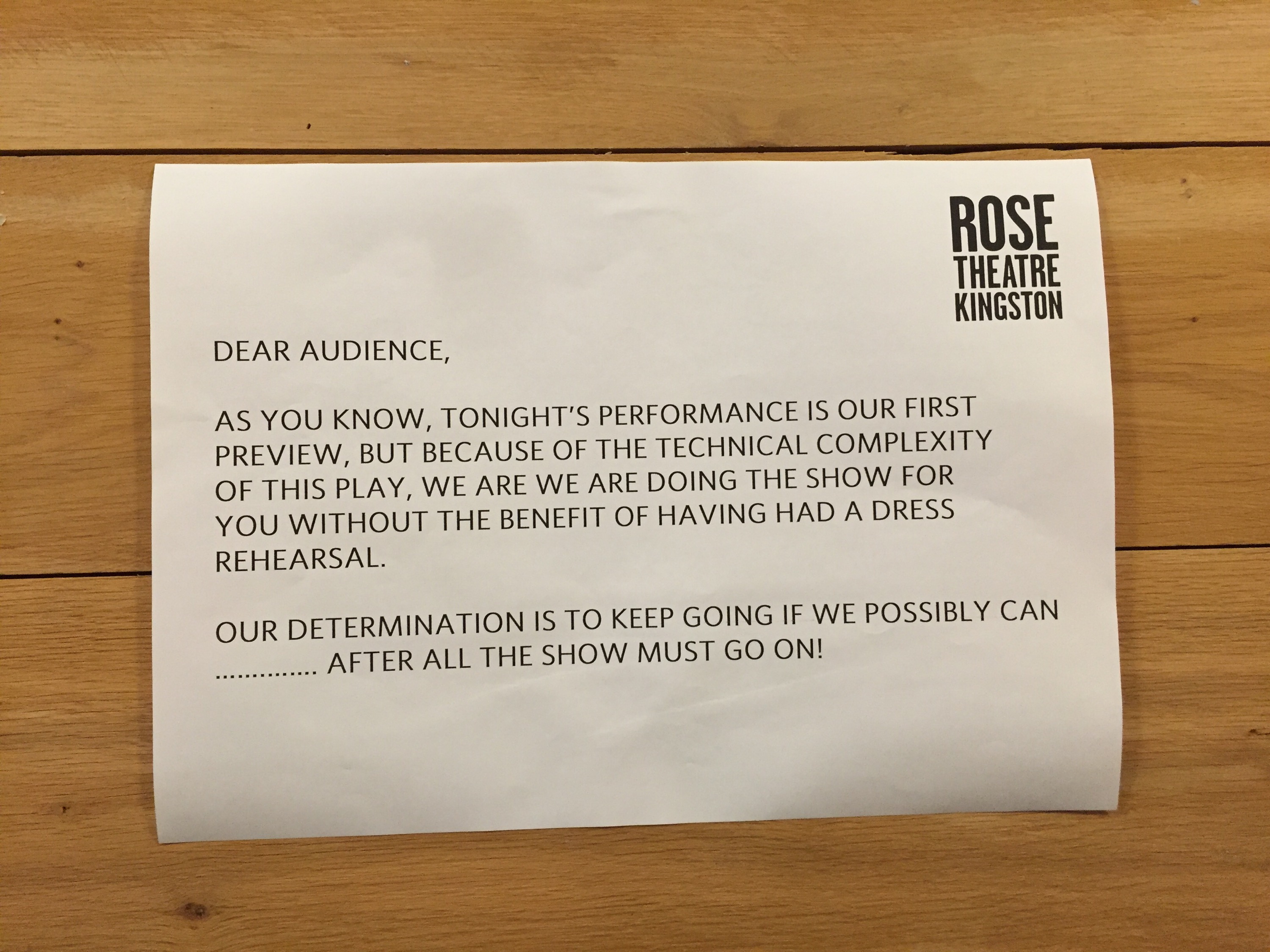 The first preview night was just under three hours.