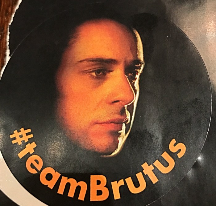 Last night it was the very first preview of Julius Caesar at the Royal Shakespeare Theatre in Stratford Upon Avon. The members of staff in the theatre were wearing stickers. They were either Team Brustus or Team Caesar. Here at AWN we are clearly Team Brutus.