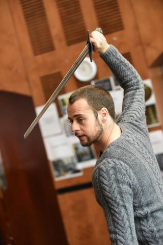 Alex rehearsing for the Bastard for the Globe production of King John. Photo Robert Day